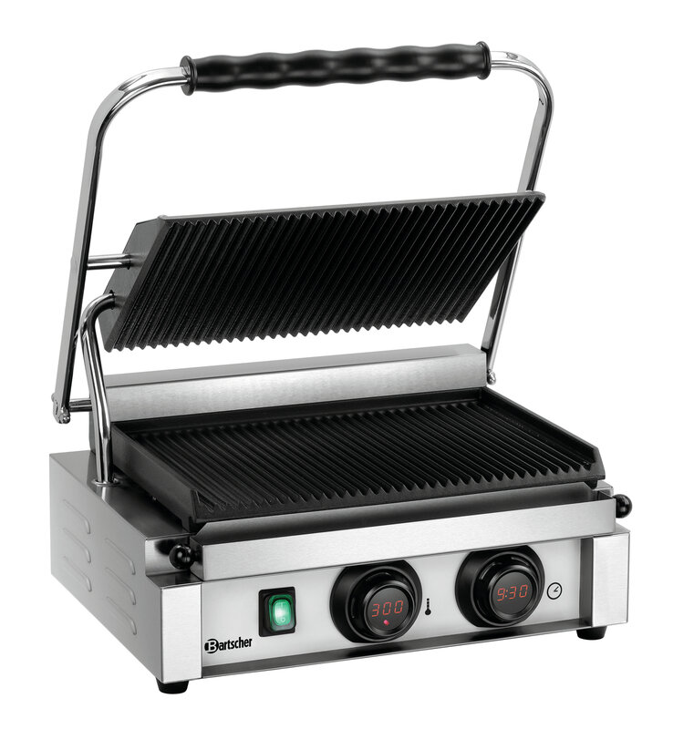 De contactgrill Panini-MDI met geribbelde grillplaten biedt alles, wat een goede contactgrill nodig heeft. Grillplaten met optimale warmtegeleidbaarheid, een robuuste bouwwijze en een eenvoudige en intuïtieve knevelbediening met digitale aanduiding, timer en signaaltoon.