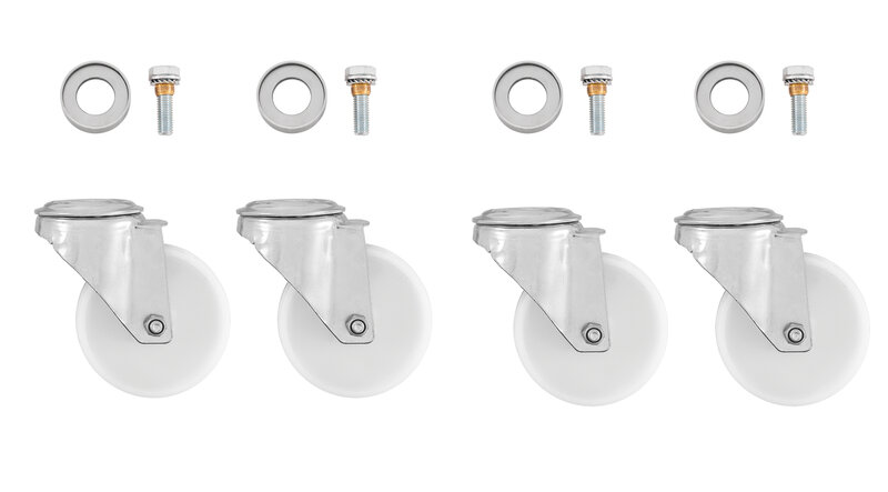 De Zwenkwielen als optioneel accessoire voor alle apparaten en werkelementen uit de 900-serie zorgen voor flexibiliteit in gebruik en vergemakkelijken het schoonmaken in de professionele keuken.
