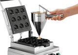 Glazuur, chocolade, kleurige hagelslag of gewoon solo: per bakproces kunnen tot 9 donuts worden geproduceerd en vervolgens naar hartenlust worden verwerkt. De digitale tijdinstelling en de timer zorgen voor gelijkblijvende goede kwaliteit.