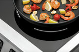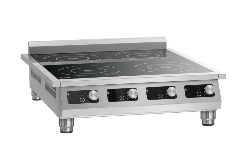 Of het nu gaat om frontcooking of als aanvulling in de keuken – de inductiekookplaat 4P 35-1 TCK overtuigt als tafelmodel met een elegante uitstraling en een totaal vermogen van 14 kW. Uitgerust met vier grote kookpitten voor pannen met een diameter tot 280 mm en de mogelijkheid om te wisselen tussen vermogensstanden en temperatuur is hij een betrouwbare partner om pieken op te vangen.