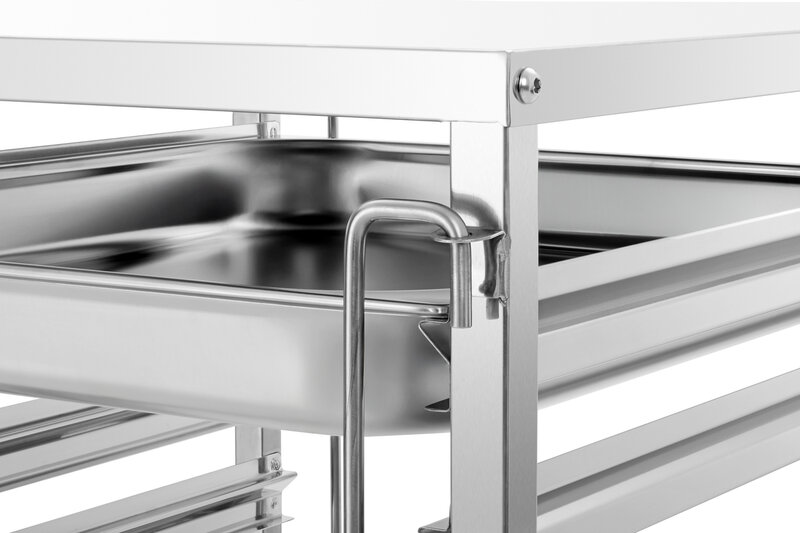 Veelzijdig en functioneel: de legbordwagen met 7 legborden in 2/1 Formaat en extra opbergruimte schept orde in het dagelijks werk. De containervergrendeling aan beide zijden voorkomt op betrouwbare wijze dat de container wegglijdt en zorgt voor een veilig transport.