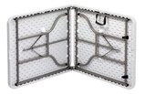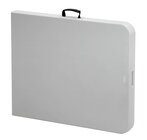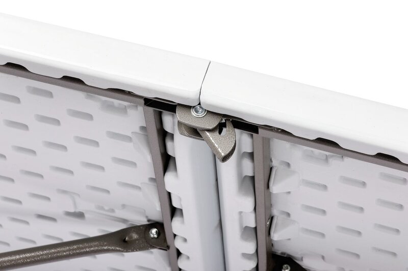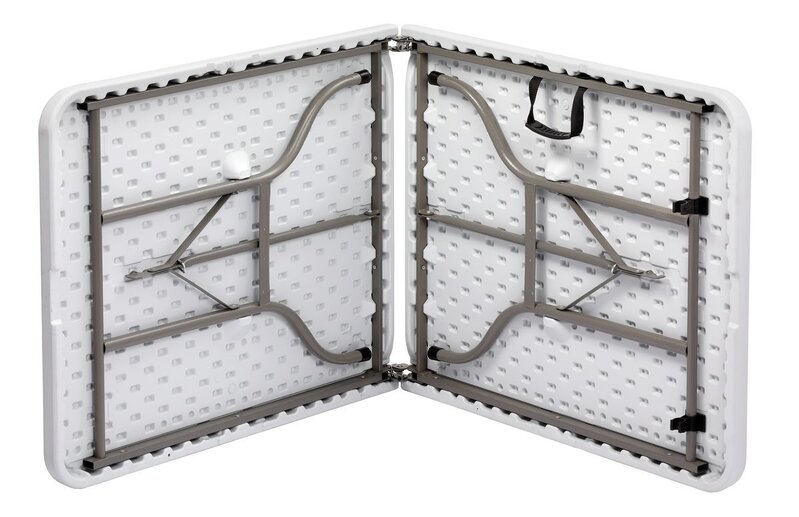 De stevige klaptafel met robuust kunststofoppervlak kan met zijn lichte en compacte uitvoering snel en multifunctioneel worden gebruikt.
