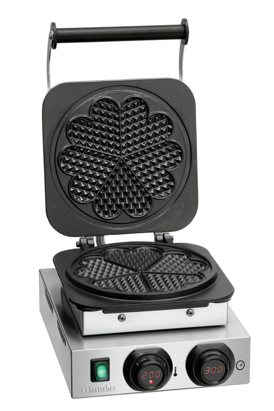 De beste voorwaarden voor de perfecte wafel: een robuuste bouwwijze, krachtige en een eenvoudige en intuïtieve knevelbediening met digitale aanduiding, timer en signaaltoon. Bovendien bieden de gietijzeren bakplaten in hartvorm een hoog warmtegeleidingsvermogen.
