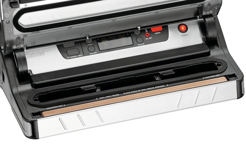 Altijd klaar: Het vacuümapparaat is met de rolhouder en het geïntegreerde mes direct klaar voor gebruik. Vooral voor kleinere hoeveelheden is het apparaat uitermate geschikt voor vacumeren, marineren en verzegelen.