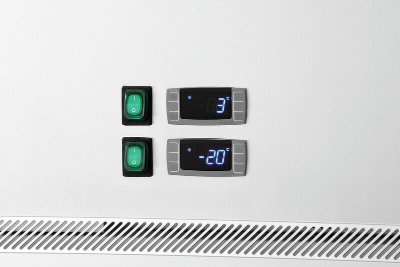 Eigenschappen: 4 zwenkwielen, 2 met rem ,Ook voor het plaatsen van GN-reservoirs ,Elk 1 aan-/uitschakelaar voor koeling en vriezen ,Boven koelen | beneden vriezen