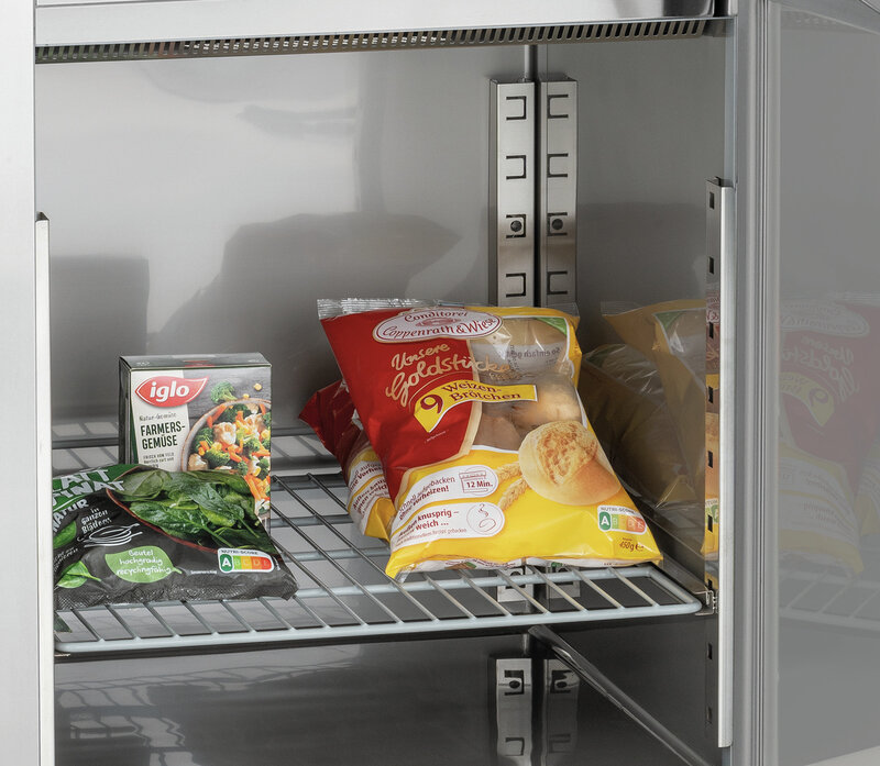 Het combiapparaat combineert koelen en vriezen en biedt zodoende snelle toegang tot gekoelde en bevroren goederen bij een geringe ruimtebehoefte. De GN-compatibel steunrails kunnen zowel voor de bijgevoegde roosters als voor GN-reservoirs worden gebruikt.