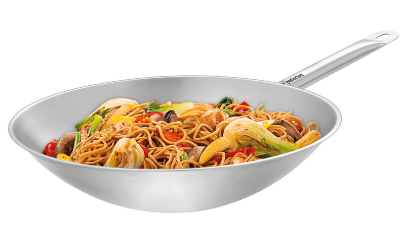 De veelzijdige wokpan voor professionele keukens: geschikt voor gas- en inductiewokkookplaten, ideaal om te braden, stoven en frituren - de oplossing voor zeer hoge eisen. Efficiëntie in de bereiding en eersteklas kookkwaliteit overtuigen over de hele lijn.