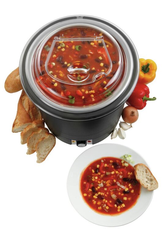 De doorzichtig polycarbonaat-deksel maakt op elk moment inzicht in de soeppan mogelijk. Geen omslachtige controle meer van de vulstanden van soepen of sauzen - geen onnodig warmteverlies meer.