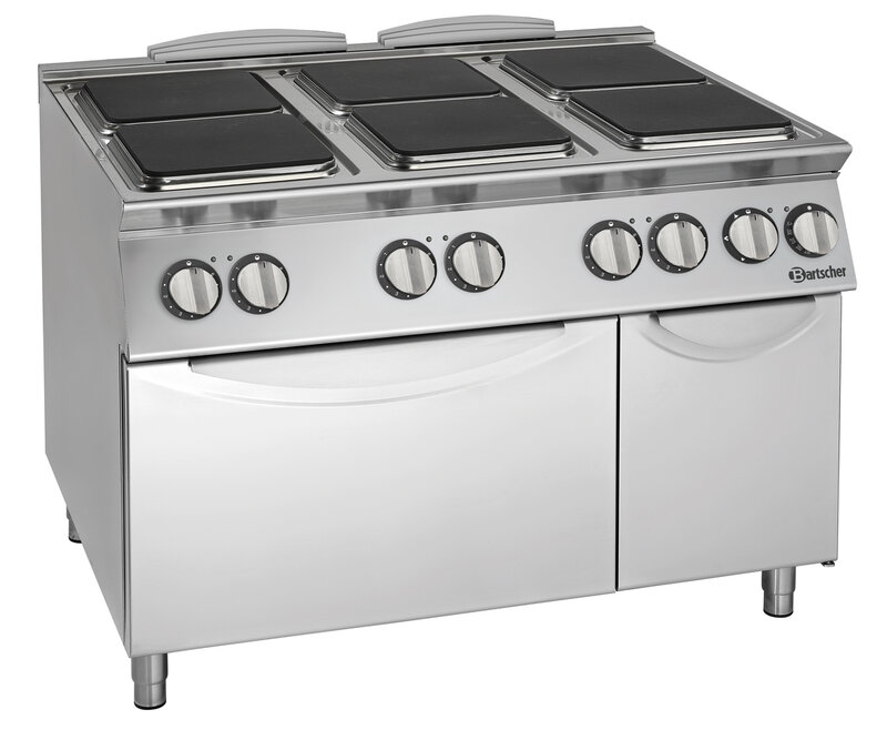 Het krachtige Elektrisch fornuis met 6 robuuste gietijzeren platen en 2/1 GN elektrische oven is perfect voor grote hoeveelheden en de hoge eisen van moderne commerciële keukens.