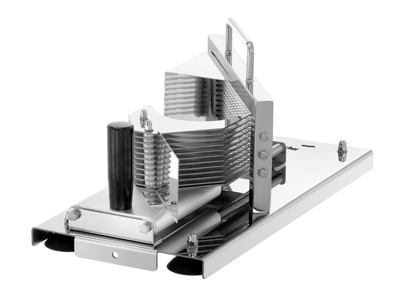 Heel gemakkelijk – plakjes tomaat voor salades, als topping voor hamburgers of voor het buffet. De handmatige tomatensnijder maakt indruk met zijn eenvoudige bediening en zuivere snijresultaten.