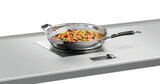 De ingebouwde inductiewok kan in tafelbladen en werkbladen worden geïntegreerd en biedt zo een optimale werkhoogte. Het aparte bedieningspaneel maakt een traploze regeling van 60 tot 240°C mogelijk. Als alternatief zijn er 10 vermogensniveaus om uit te kiezen.