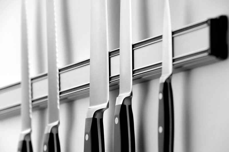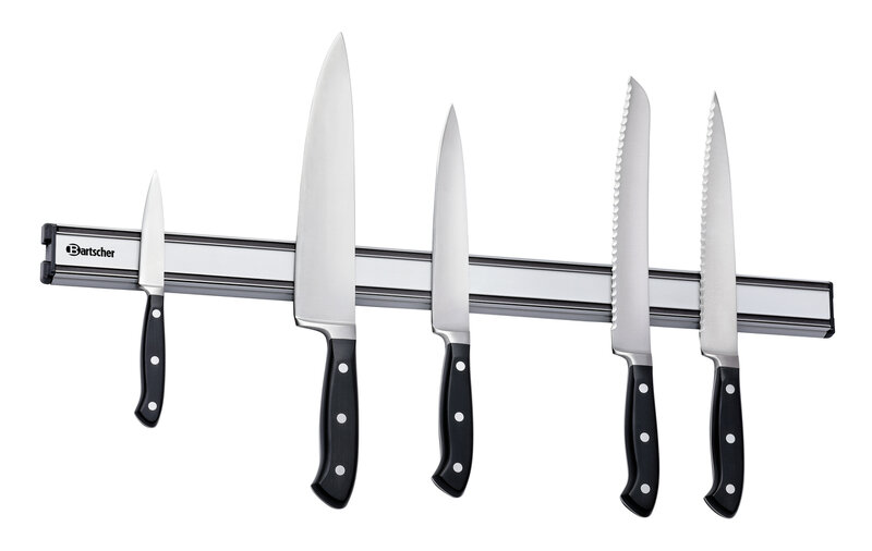 De duurzame aluminium magneetstrip zorgt voor een opgeruimde werkplek. Messen, scharen en keukengerei vinden hun plekje duidelijk gerangschikt en zijn voor iedereen op elk moment snel bij de hand.