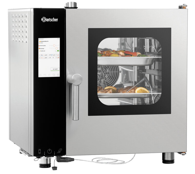 De ideale partner in iedere keuken: Bartscher combisteamer met 5 roosters in het 2/3 GN formaat. Met of zonder kerntemperatuurvoeler - de elektronische bediening maakt een op behoeften gebaseerde regeling van alle gaarprocessen mogelijk. Met de rack-controlefunctie kunnen verschillende gerechten met verschillende tijden worden bereid. Een geruststelling, waarbij de Silverstream2 alles voor u in het zicht heeft.