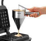 De Wafelijzer voor Brusselse wafels is afgewerkt in elegant mat zwart en combineert stijlvol design met krachtige technologie. De robuuste gietijzeren platen zorgen voor een gelijkmatige bruining en de typische luchtige textuur - hap na hap een traktatie. Dankzij de intuïtieve Besturing met digitaal display, timer en signaaltoon wordt elke wafel haarfijn gebakken met een constant hoge kwaliteit.