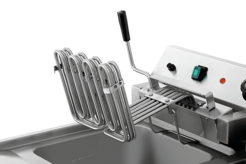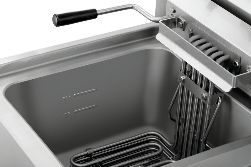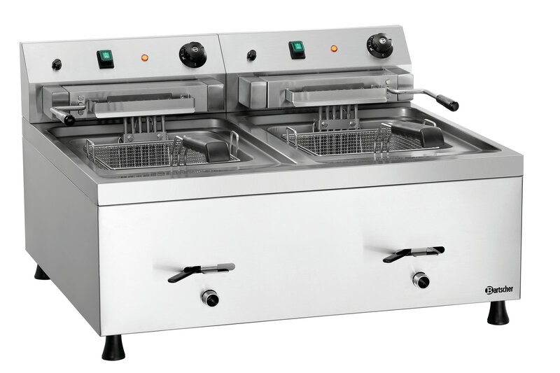 Als robuust apparaat voor op de tafel is de friteuse met de beide 12 liter bakken in het bijzonder bestemd voor het gebruik in de professionele grote keukens. De vetaftapkraan, de uitneembare kruimelzeven en de uitzwenkbare verwarmingselementen maken een eenvoudige reiniging mogelijk.