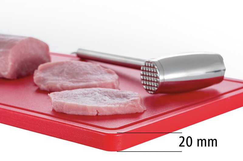 Hygiëne centraal met de snijplankserie PRO in het formaat 53 x 32 cm – verschillend gekleurde snijplanken voor verschillende voedingsgroepen. De HACCP-conforme rode snijplank is ontworpen voor het snijden van rood vlees zoals rundvlees, varkensvlees of wild.