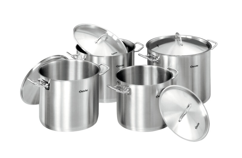Set bestaande uit: 4 pannen met deksel ,Pan 1: inhoud 8 liter, Ø bodem 24 cm, hoogte 20 cm ,Pan 2: inhoud 9 liter, Ø bodem 26 cm, hoogte 20,5 cm ,Pan 3: inhoud 13 liter, Ø bodem 28 cm, hoogte 22,5 cm ,Pan 4: inhoud 15 liter, Ø bodem 30 cm, hoogte 25 cm