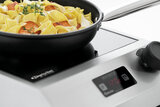 Flexibel inzetbaar en krachtig presenteert de inductiekookplaat met één kookplaats zich. Het vermogen of de temperatuur kan eenvoudig worden geregeld via het gecombineerde touch- en kneveldisplay.
