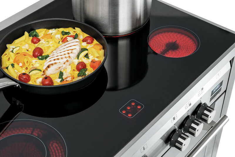 5 kookplaatsen, die uitnodigen om te koken, braden of stomen op de keramische kookplaat. De multifunctionele oven met timer overtuigt door zijn veelzijdige functies zoals hete lucht, boven/-onderwarmte, circulatielucht of grill. Dankzij de verzegeling van de gaarruimte is de oven bovendien zeer energie-efficiënt en biedt een optimale gesteldheid voor reiniging.