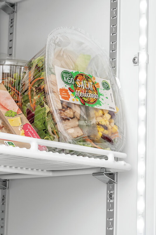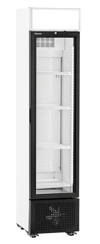 De blikvanger in ieder zelfbedieningsbereik: met het verlichte reclamedisplay trekt de glasdeurkoelkast de aandacht en presenteert producten in het beste licht.