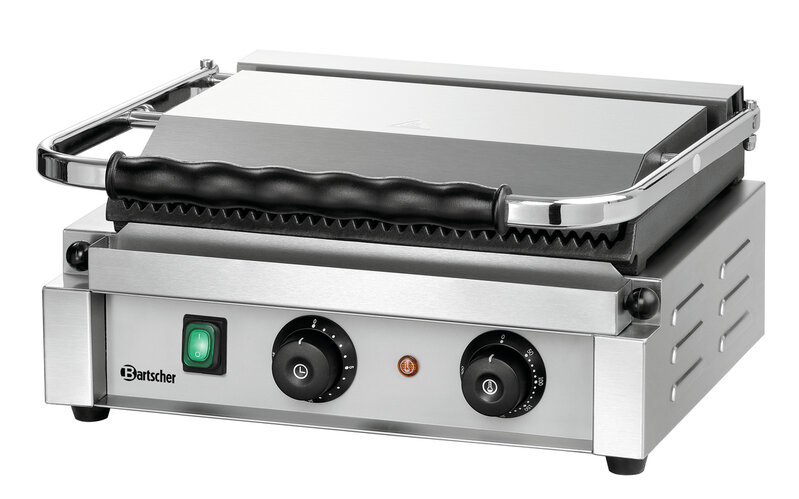 Krachtige contactgrill met groot grillvlak en geïntegreerde timer - De solide constructie met gietijzeren grillplaten zorgt voor een goede en schone verwerking van het voedsel.