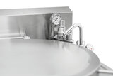 Eigenschappen: Automatische controle van de waterstand in tussenmantel ,Drukbewaking: trechterarmaturen met veiligheidsventiel (op 0,5 bar gekalibreerd) ,Elektrische verwarming middels ingekapselde Incoloy 800-weerstanden van een speciale legering ,Mengkraanunit voor koud en warm water ,Bij storing automatische uitschakeling ,Inclusief: Afvoerzeef