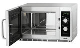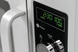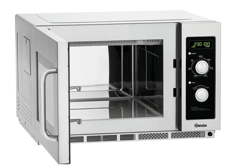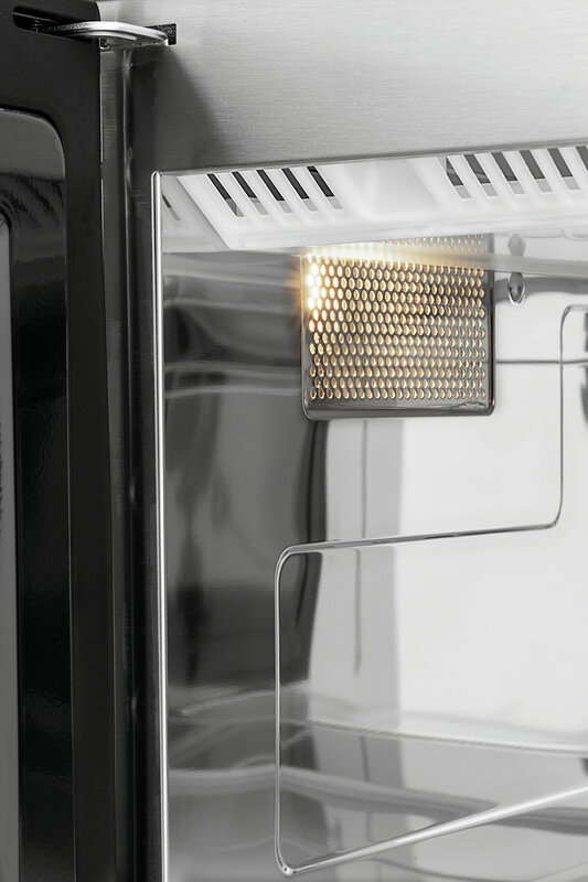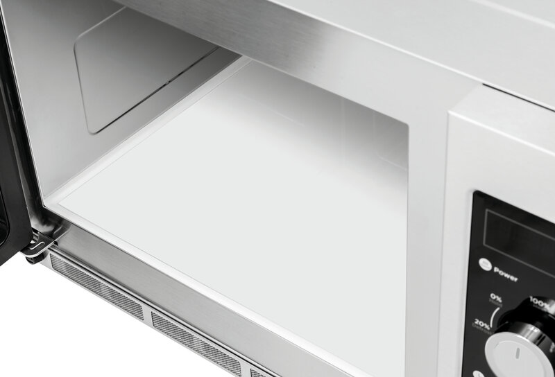 De extra grote gaarruimte van de magnetron is voorzien van een keramische bodem. Dit zorgt voor een gelijkmatig verwarmingseffect, dat via het magnetronvermogen van 1800 watt in 6 fasen wordt geregeld.. Naast de vermogensregeling kan ook het opwarmen en ontdooien van voedsel geregeld worden via de timer.
