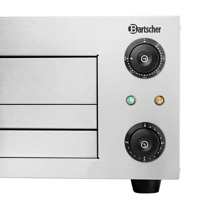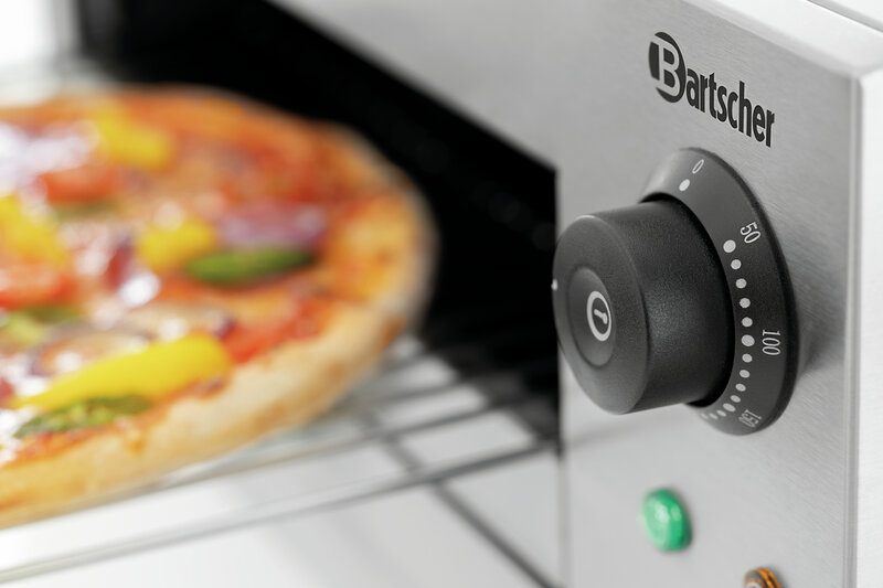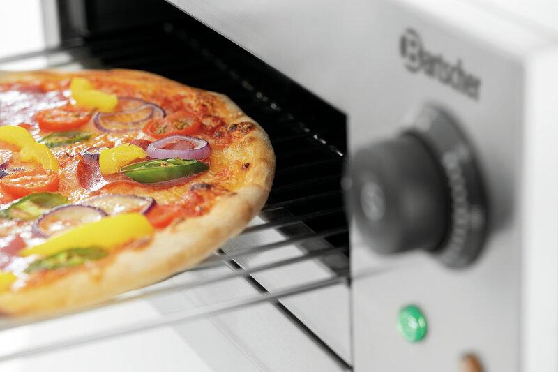 De pizzaoven produceert na een korte opwarmtijd diepgevroren of voorgebakken pizza's met een knapperige bodem en sappige topping. Het compacte roestvrijstalen model is ontworpen voor kleinere productiehoeveelheden - ideaal voor bistro's, snackbars of afhaalrestaurants. Voor een eenvoudige hantering is het ovenrooster met deur en greep verbonden.