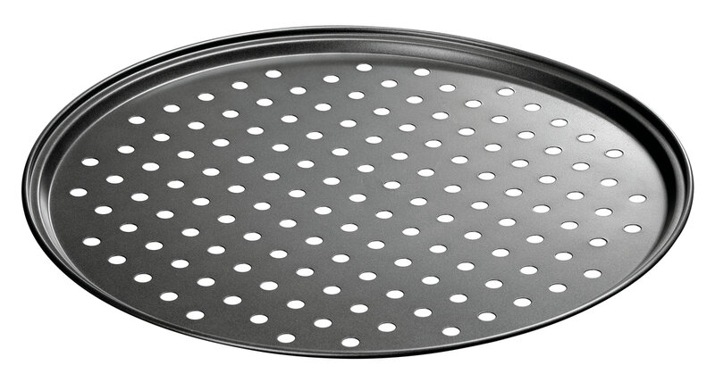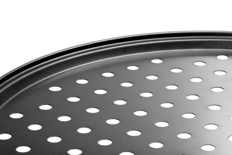 De geperforeerde bodem van het pizza-bakblik zorgt voor een goede luchtcirculatie - Wat een knapperige, volledig gebakken pizzabodem bijzonder succesvol maakt. Dankzij de antiaanbaklaag kunnen zijn zelfs dunne en gevoelige deegwaren zeer goed worden losgemaakt van het blik.