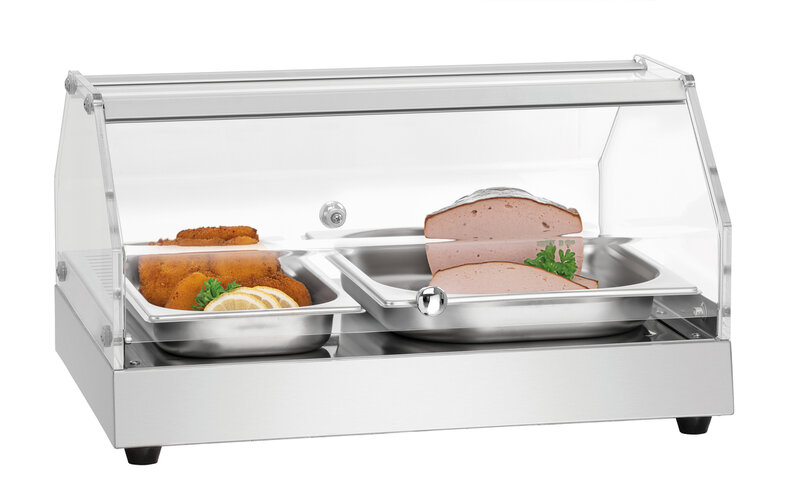 Verwarmende vitrine met één niveau voor perfect gepresenteerde culinaire hoogstandjes. Dankzij de warme, vochtige lucht is het voedsel zelfs na enkele uren bewaren nog warm en sappig - net als vers uit de oven. Twee scharnierende deuren aan de voor- en achterkant maken het gemakkelijk om de tas aan beide kanten uit te nemen en te bezetten.