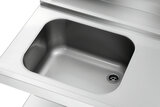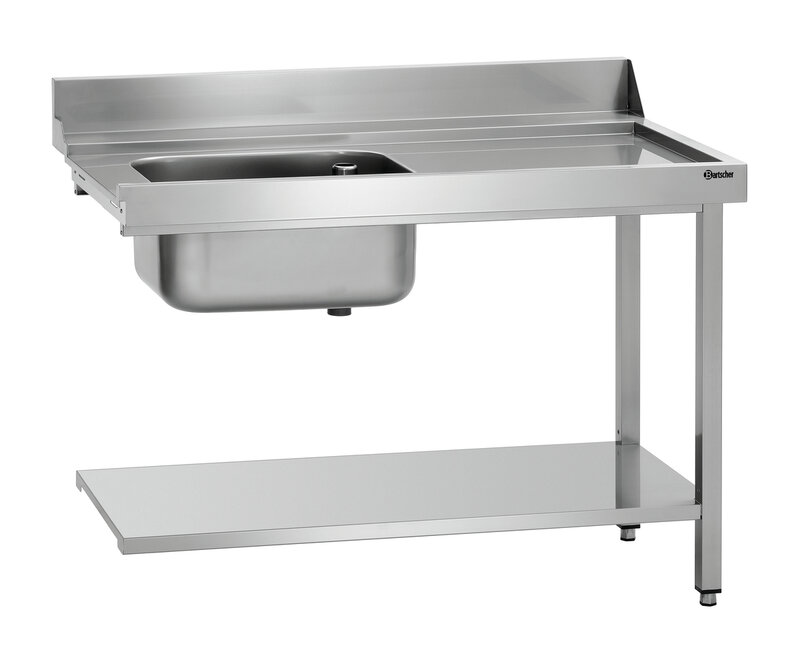 De 1,2 m brede voorreiniging met spoelbak is ontworpen voor aanbouw aan de rechterkant van de Bartscher doorschuifvaatwasmachines DS. Een basisbodem biedt opbergruimte voor spoelkorven.