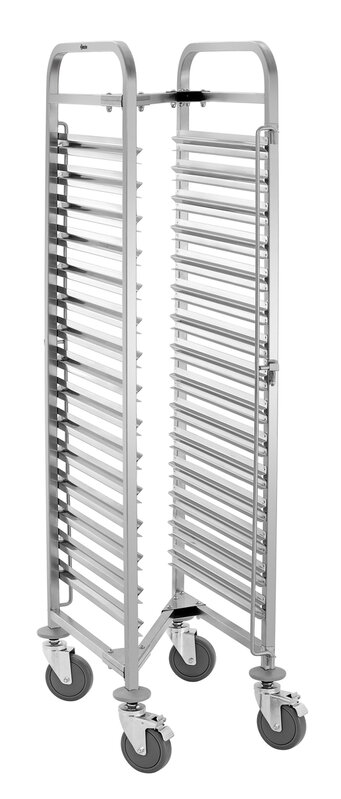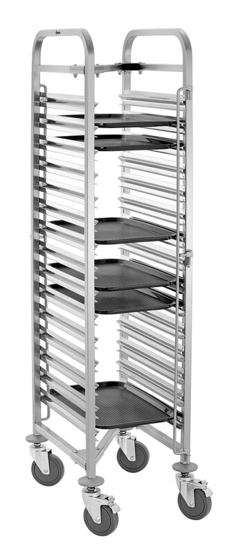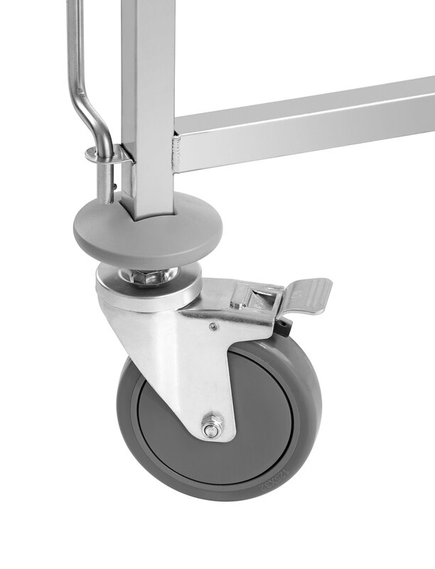 Ruimtebesparend en robuust ontwerp: de legbordwagen met 15 legborden in 1/1 Formaat draagt tot 150 kg en kan dankzij het speciale ontwerp gemakkelijk in elkaar worden geschoven - ideaal voor efficiënte opslag.