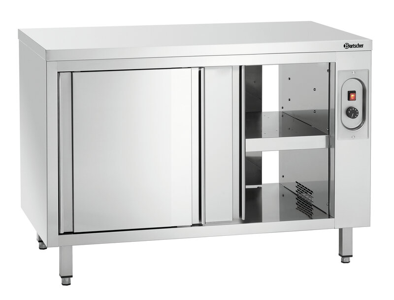 De warmkast met een breedte van 1,2 meter biedt een traploos instelbare, verwarmde opbergruimte met bediening aan beide kanten. Het robuuste oppervlak van roestvrij staal vormt tegelijkertijd een solide werkelement in de keuken.