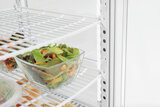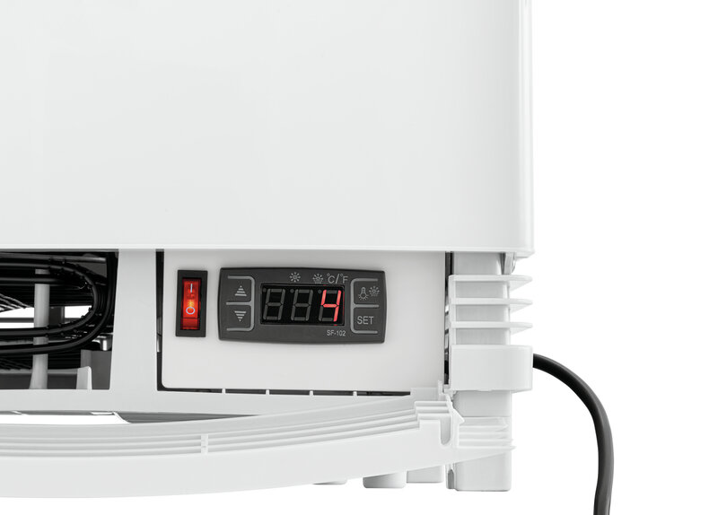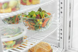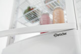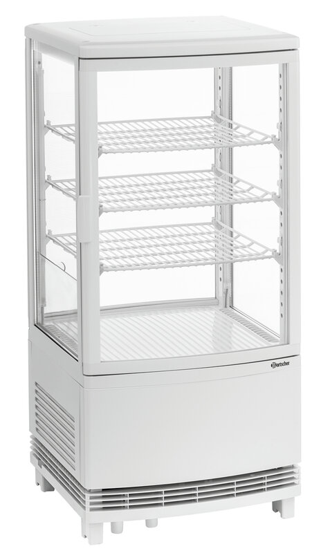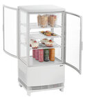 De mini-koelvitrine met gewelfde vleugeldeuren aan voor- en achterkant is ideaal voor het baliebereik. Door in hoogte verstelbare roosters biedt de witte koelvitrine een flexibele vulling op 4 niveaus bij een inhoud van 75 liter. Met de LED-verlichting wordt gekoeld voedsel optimaal gepresenteerd en in het beste licht gezet.