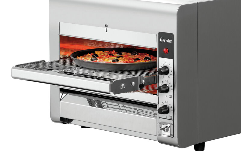 Pizza en snacks aan de lopende band: De doorloop-pizzaoven is ideaal voor pizza's, belegde baguettes en toasts. De individuele snelheidsregeling van de transportband maakt elk gerecht knapperig en lekker.