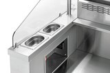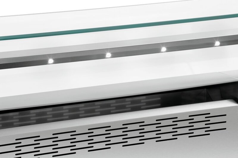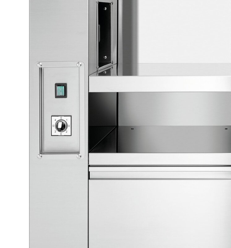Uitgerust met: 4 GN-bakken 1/9 GN, 100 mm dief voor olie, sauzen, kookbestek ,Opbergvak onder de nis, afmetingen: B 1.200 x D 600 x H 150 mm ,Geïntegreerde, elektrische bescherming ,Ingebouwde ventilatie met vlamvertragingsfilter