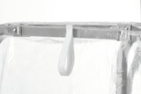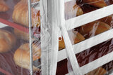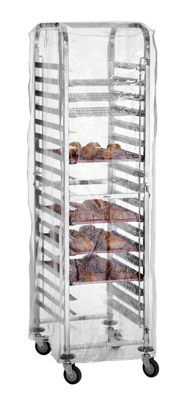 De bij de Euronormwagen 18EN60400 passende transparante afdekhoes beschermt bij transport en opslag tegen stof en onzuiverheden - zelfs in koelruimten. De ritssluitingen maken een ongecompliceerd vullen van de wagen mogelijk, ook met opgetrokken hoes.