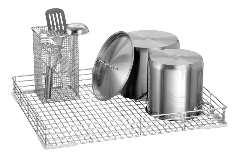 Afzonderlijk te gebruiken roestvrijstalen spoelkorf voor potten, pannen of GN-bakken, geschikt voor de TS5500 dienbladspoelmachine.