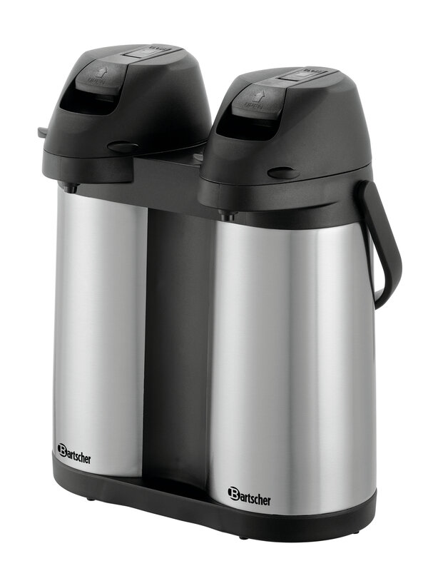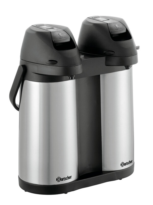 2 keer 1,9 liter - warme dranken in een dubbelpak. Met de dubbele thermoskan met pomp kunnen met slechts een apparaat 2 verschillende warme dranken gelijktijdig worden aangeboden. Bij het buffet, in de kantine, bij evenementen of meetings.