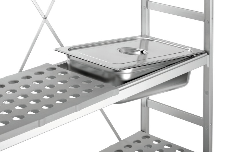 De stelling kan niet alleen op alle gebieden van de gastronomie worden gebruikt, maar is ook bijzonder veelzijdig: GN-containers kunnen worden gebruikt in plaats van schappen.