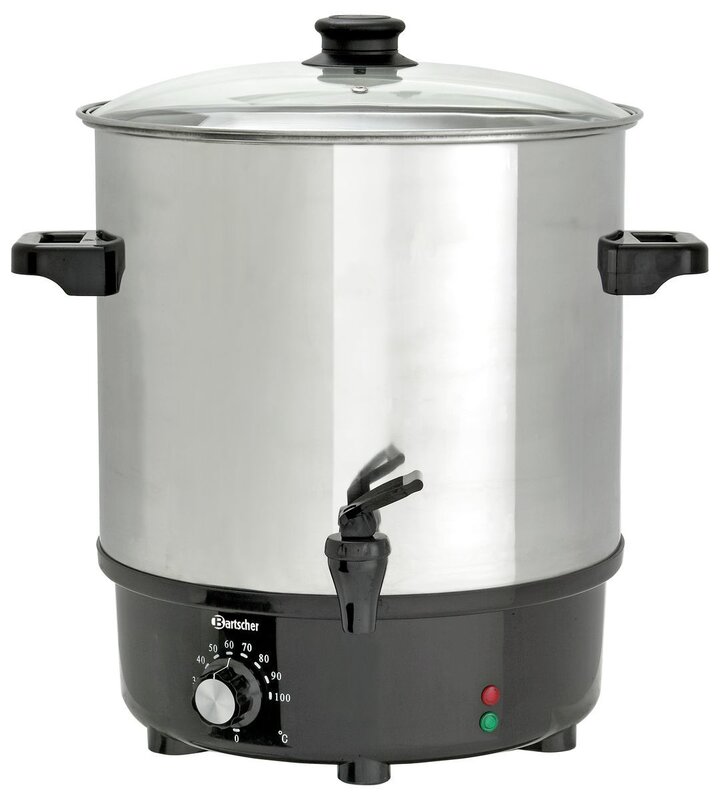 De glühweinpot / inmaakpot met 25 liter inhoud biedt veelzijdige inzetmogelijkheden: voor de uitgifte van glühwein - de klassieker op evenement- en kerstmarkten - of voor het inmaken van groenten en fruit.