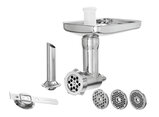 Set bestaande uit: 1 opzettableau ,1 roestvrijstalen mes, 4 vleugelig ,1 voorzetstuk voor spuitbaksel ,1 stopper ,1 worstenstopper ,4 geperforeerde schijven (3 mm, 4,5 mm, 6 mm, 8 mm)