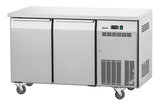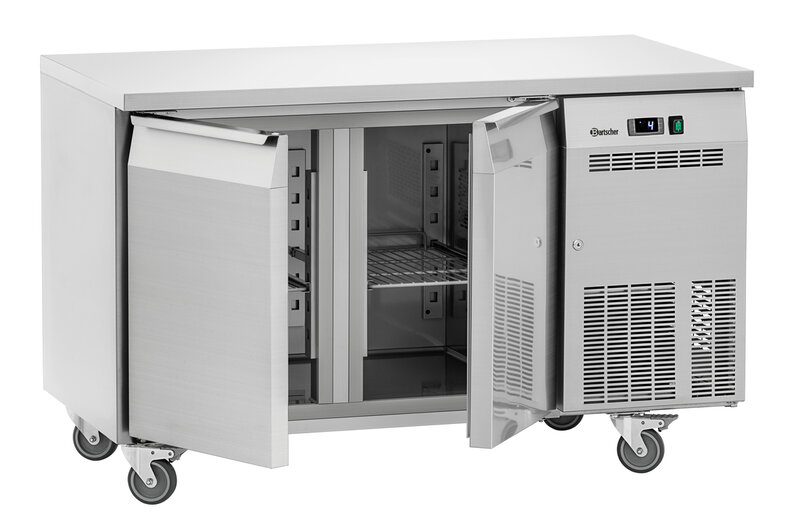 De koeltoonbank met 2 deuren zorgt voor een gelijkmatige en constante koeltemperatuur in het hele interieur dankzij het convectiekoelsysteem. Het robuuste roestvrijstalen oppervlak past naadloos in elke keuken en kan ook worden gebruikt als praktisch werkblad. Dankzij Klimaatklasse 5 is deze koelkast ook geschikt voor bijzonder warme omgevingen.