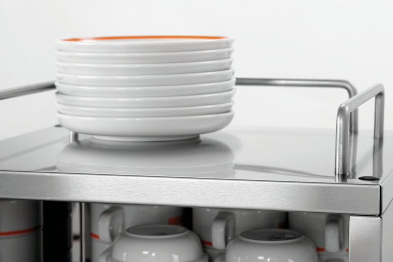 Voorverwarmde kopjes voor meer koffiegenot - De afzonderlijk inschakelbare warmtetoevoer kan voor beide niveaus traploos worden geregeld.