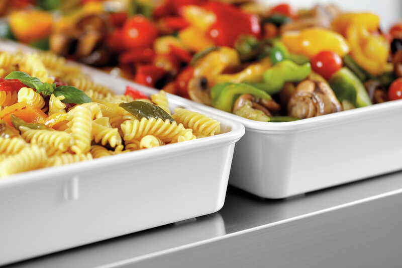 Gerechten en levensmiddelen aantrekkelijk in de schaal presenteren. De kwalitatief hoogwaardige schalen van melamine kunnen op verschillende manieren worden gevuld en het hebben een aantrekkelijk ontwerp.