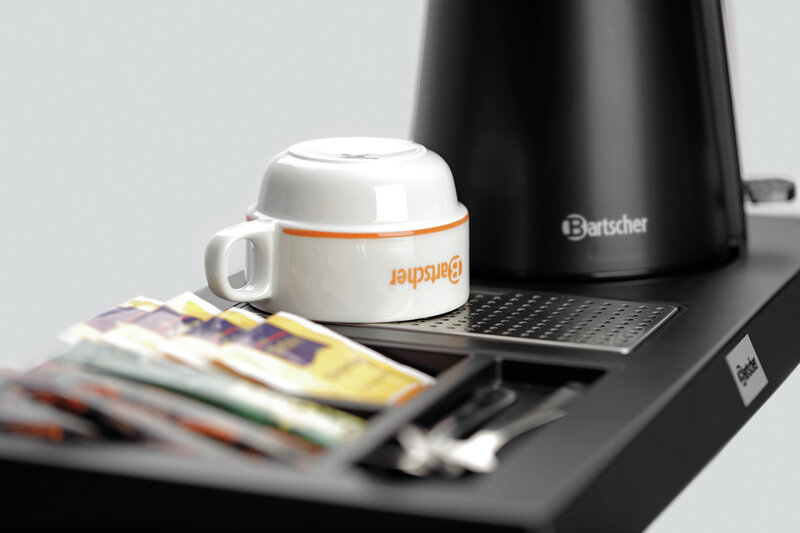 Warm water voor thee, instantkoffie of andere opgietdranken: op de hotelkamer, in wachtruimtes of bij de klantenservice. Met het theestation is alles ordelijk en meteen binnen handbereik - Van het theezakje tot en met de lepel.
