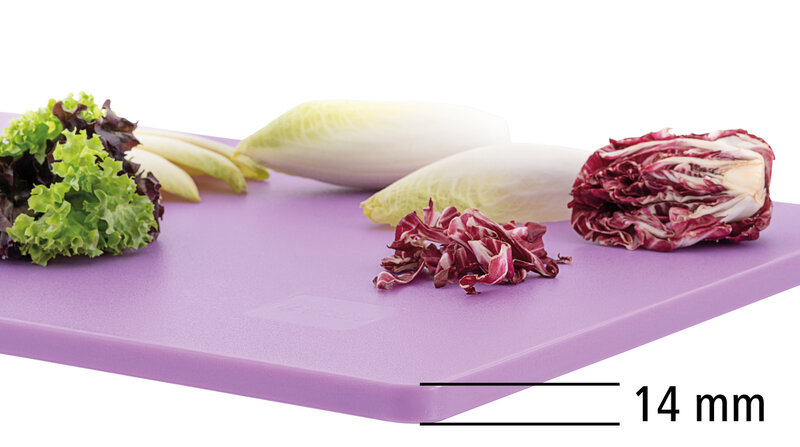 Focus op hygiëne met de snijplanken in Formaat 53 × 32 cm - Snijplanken in verschillende kleuren voor verschillende voedselgroepen. De dubbelzijdige, HACCP-conforme Snijplank in paars - voor allergeenvrij voedsel - maakt indruk met zijn duurzaamheid.