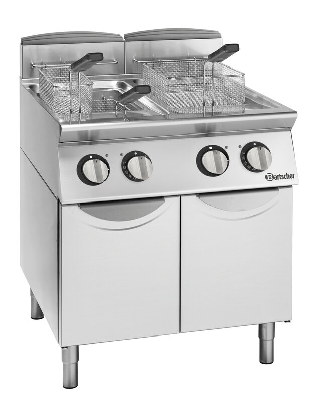 De Friteuse met twee bakken van 21 liter - grote Capaciteit, gemakkelijke bediening en moeiteloos schoonmaken dankzij de Vetopvangbak en draaibare Verwarmingselementen.