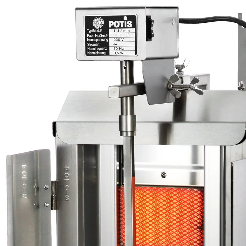 Dönergrill | Standard | Gas | 1 Brander | 3.5kw | Max. 7kg | Rotatiemotor Boven | Incl. Zijpanelen | 320x420x605(h)mm