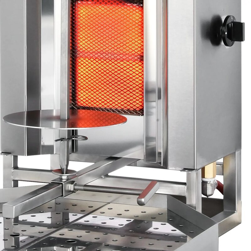 Deze Dönergrill STANDARD Gas is voorzien van gas verhitting en is een vermogen van 5,6 kW (2x 2,8 kW). De behuizing is vervaardigd uit RVS.